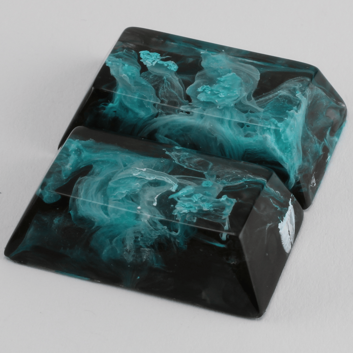 Handmade cast artisan keycap by Asymplex A matching pair of 1.75u bars. Keycap Profile: Cherry Row & Size: Row 4 Bar, 1.75u Compatible Switch: MX-style Material: Epoxy, Alcohol Inks Ink Colors: White, Laguna, Black