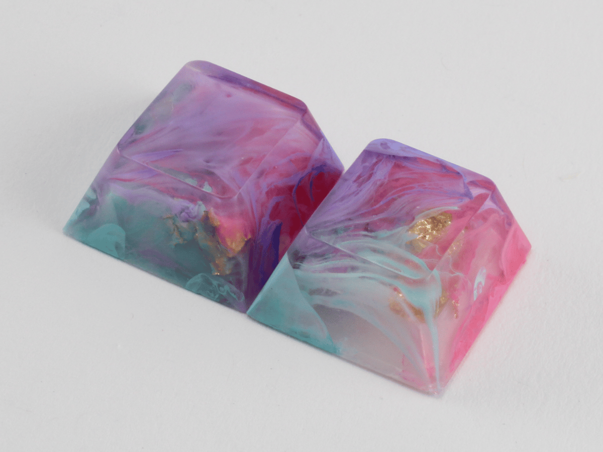 Handmade cast artisan keycap by Asymplex A matching pair of 1us Keycap Profile: Cherry Row & Size: Row 4 Bar, 1.00u Compatible Switch: MX-style Material: Epoxy, Alcohol Inks