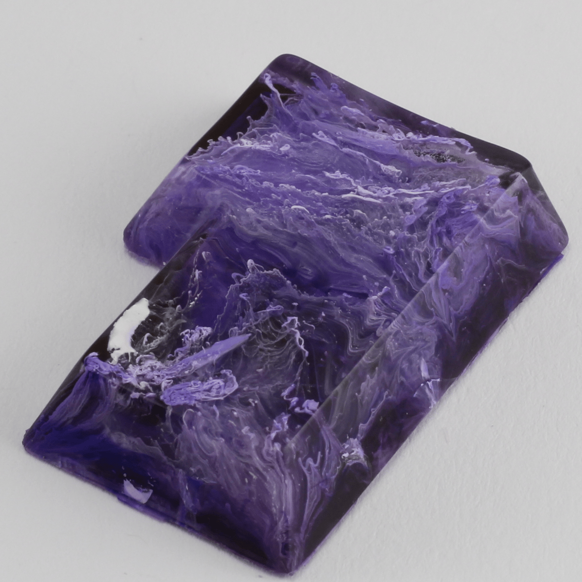 Handmade cast artisan keycap by Asymplex Cherry ISO Enter. Keycap Profile: Cherry Row & Size: ISO Enter Compatible Switch: MX-style Material: Epoxy, Alcohol Inks Ink Colors: White, Amethyst, Vineyard