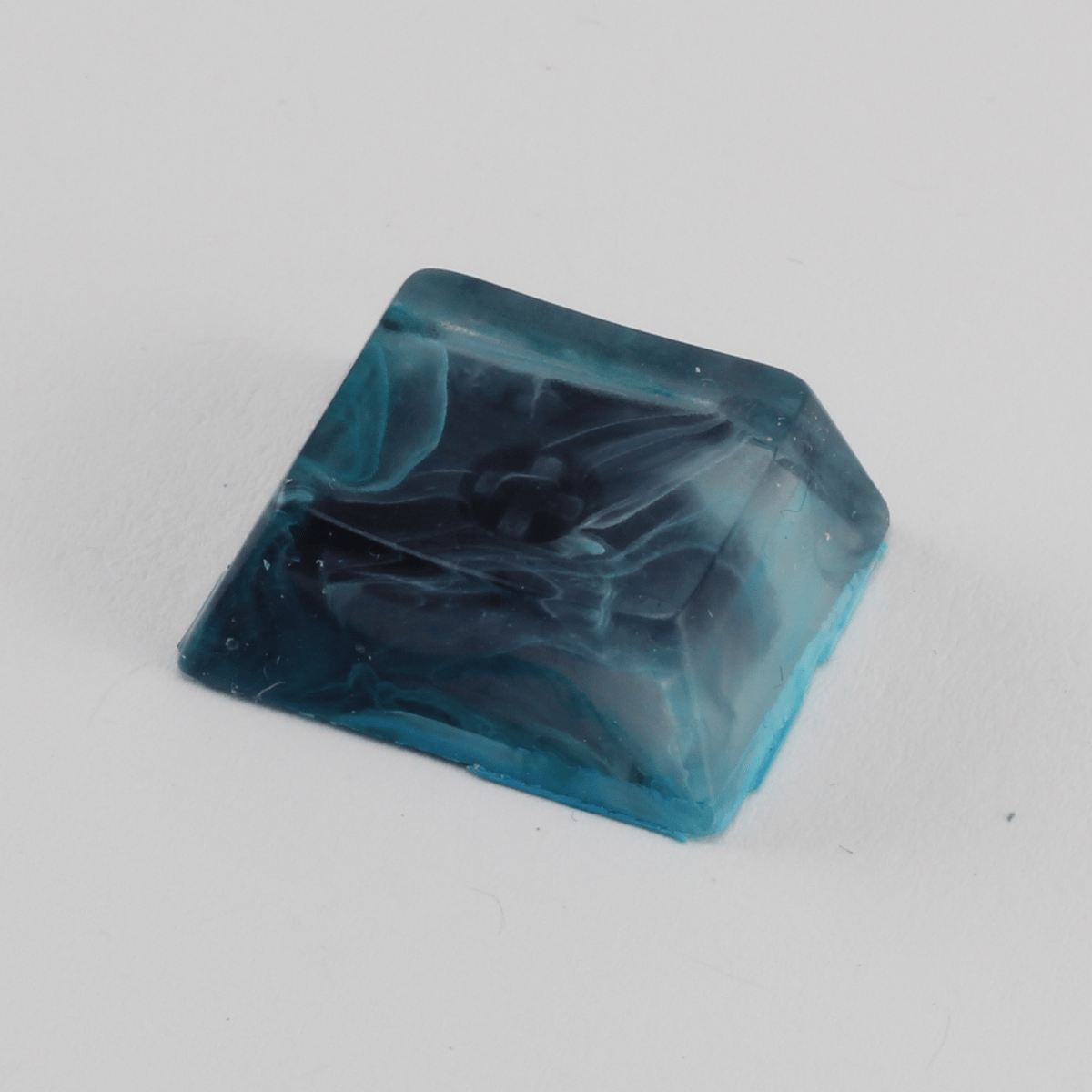 Handmade cast artisan keycap by Asymplex Row 2 1.25u Cherry keycap. Keycap Profile: Cherry Row & Size: Row 2 1.25u Compatible Switch: MX-style Material: Epoxy, Alcohol Ink Ink Colors: White, Laguna, Black
