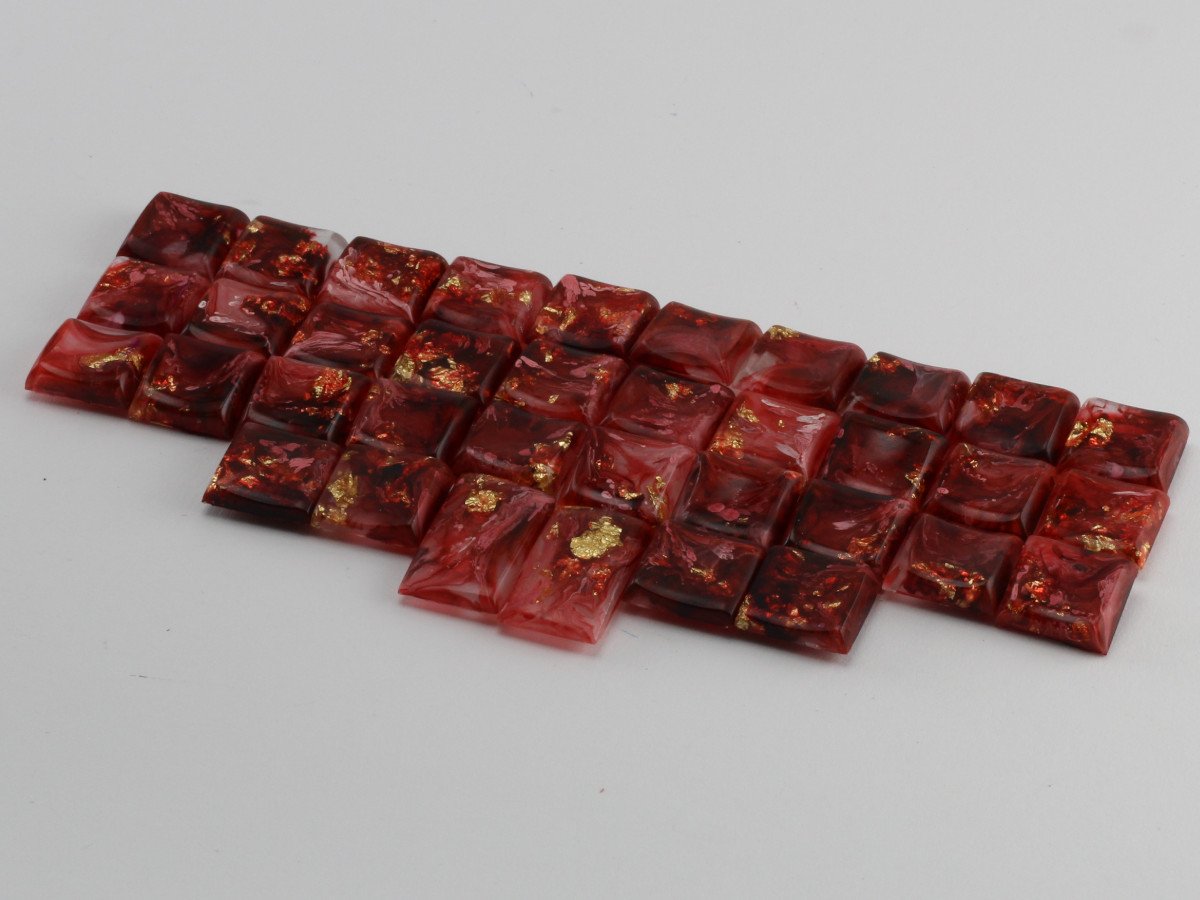 Handmade cast artisan keycap by Asymplex Keycap Profile: Chicago Stenographer (CS) Compatible Switch: Choc V1 switches in Choc Spacing (17x18mm) Material: Epoxy, Faux gold leaf, Alcohol Ink